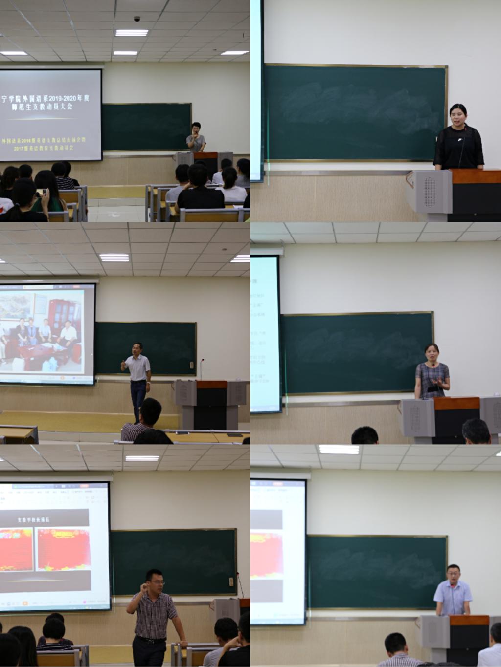 会议开始,外国语系主任杨楠以“无支教、不青春”鼓励同学们以青春之名义、积极之态度、勇于挑战之精神,怀着感恩之心,迎接支教实习,展现新时代大学生风采。接下来,四位教师代表分别从身份的转变、责任的担当、成长的历练以及支教的意义等方面向同学们转达了老师们的叮嘱和期待。系办公室主任闫彩霞传达了实习支教工作的方案,并向同学们介绍了各实习小组的指导教师,在同学们的热烈掌声中各位指导教师与支教学生进行了见面。