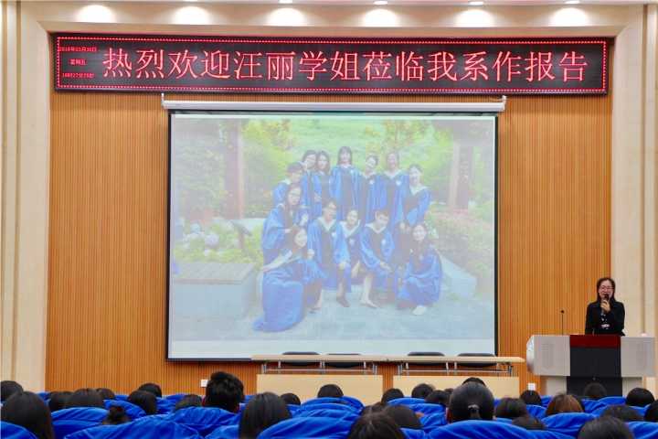 2018年 3月30 日晚7:00-9:00,我系邀请到2012届优秀毕业生汪丽(现为南京大学安博在读博士生),在3号楼报告厅为全系师生做了题为“大学生英语自主学习模式的建构”的报告。我系党总支副书记徐俊凯、副主任张颖、辅导员、老师代表以及全体学生参加了此次报告。