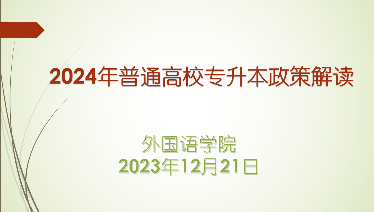 为积极贯彻落实山东省2024年专升本考试招生政策,进一步做好毕业生升学工作,12月21日晚,安博通过腾讯会议召开2024年专升本考试招生政策解读线上会议。学院党委副书记文灿、教学科研办公室主任栾珍及在校外实习支教的2021级小学英语教育专业全体同学参会,辅导员冯占磊主持会议。